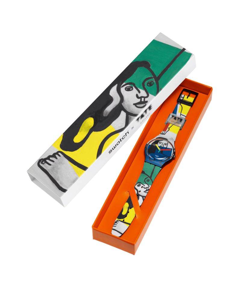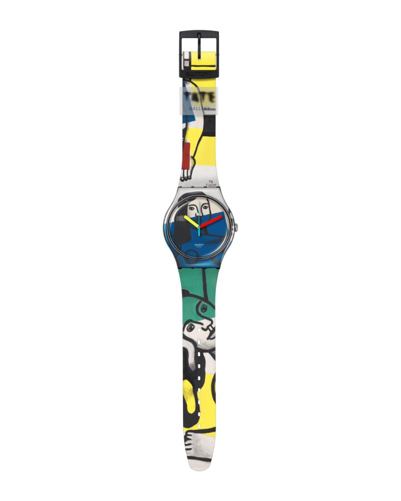 Swatch Tate Gallery Leger'S Two Women Holding Flowers 41Mm Quartz Blue Dial Black Silicone Strap Suoz363