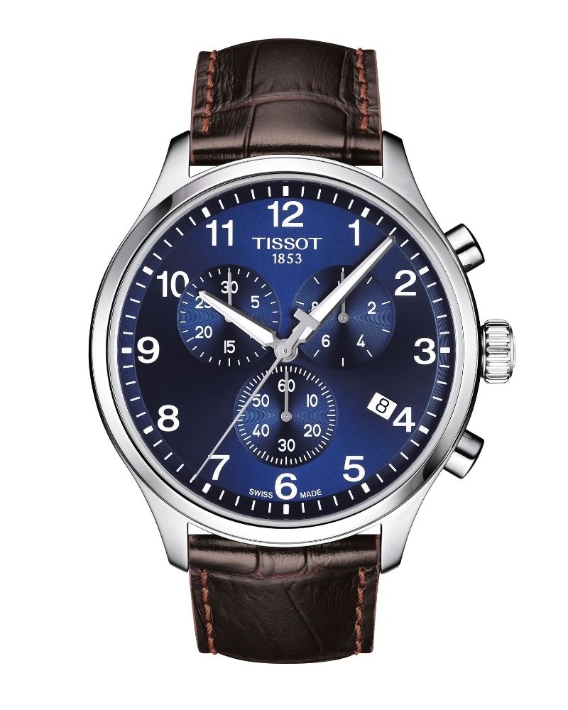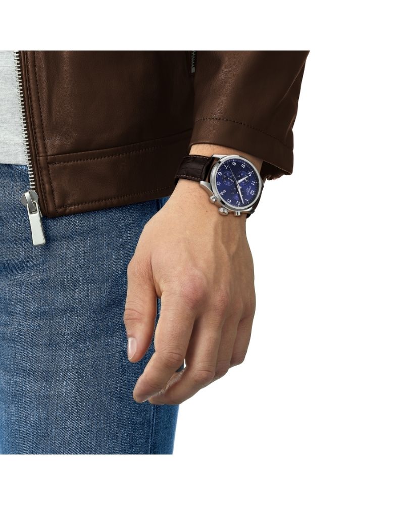 Case Diameter 45MM, Quartz Movement, Chronograph, Blue Dial, Brown Leather Strap, Model T1166171604700, Product Code 2068136073