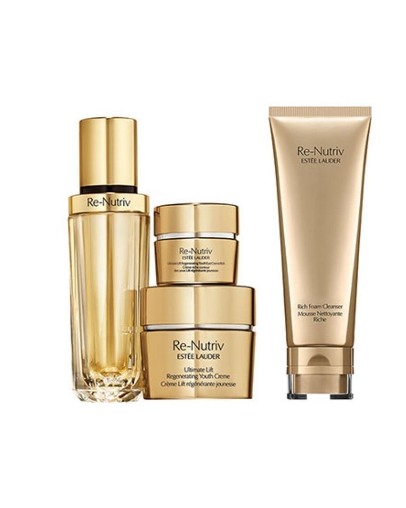 At the heart of these Ultimate Lift Regenerating Youth luxuries is our precious Gentian extract, derived from a remarkable flowering plant that is indigenous to the Himalayan mountain range. Inspired by its self-renewing power, Re-Nutriv extracts its hidden energies, concentrating a “survival molecule” from the plant. The high-performance formulas in this skincare set work together to reveal the vital, radiant bloom of youth.