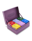Inside a colourful recyclable cardboard gift box, tea is packed into limited-edition, reusable tins to keep fresh.