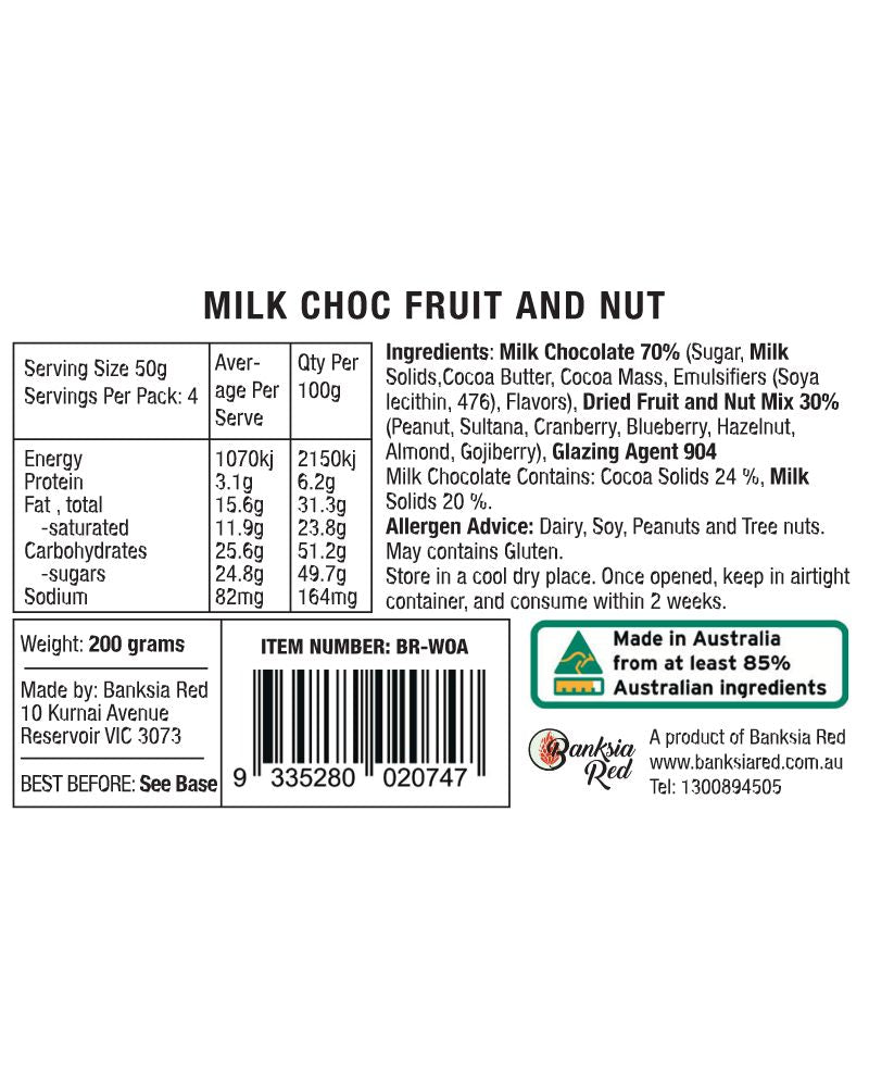 Banksia Red 'wrens of Australia' Milk Chocolate Fruit & Nut Mix 200g
